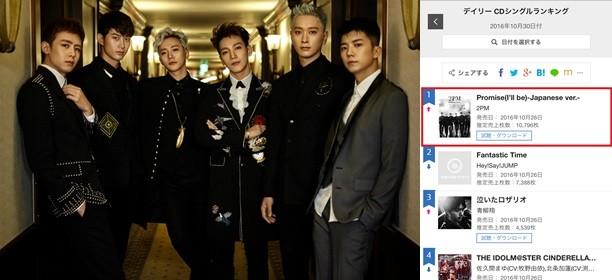 지난달 31일 발표된 일본 오리콘 차트에 따르면 2PM의 일본 11집 싱글 'Promise(I’ll be)-Japanese ver-'이 오리콘 데일리 차트 1위에 올랐다.