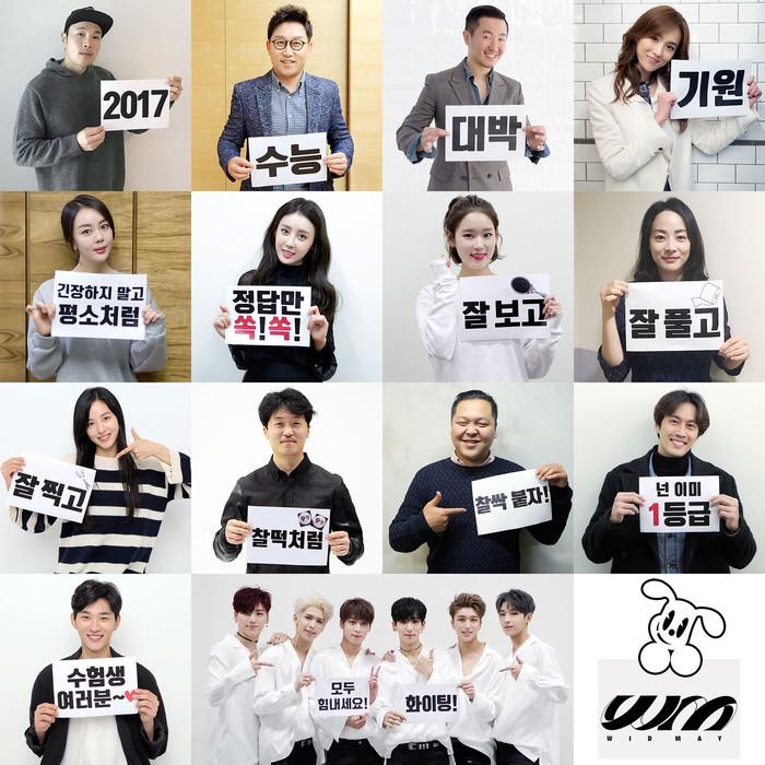 2017학년도 대학수학능력시험을 하루 앞둔 16일 위드메이는 소속 연예인들의 수능 응원 사진을 공개하며 수능대박을 기원했다. 공개된 사진은 신승환, 김현욱, 안일권, 이희진, 백보람, 이슬비, 박환희, 김리나, 안지혜, 심윤보, 유준홍, 백준서, 이도겸, 스누퍼 등 위드메이 소속 연예인들이 릴레이 문구를 들고 있으며, 독특한 응원으로 재미를 선사했다.