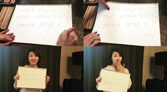 영상 속에는 하지원은 직접 ‘1023 Day~ 100년...10000년만 사랑해도 될까요?’라는 글씨를를 쓰는가 하면 메시지가 다 완성된 스케치북을 들고 환히 웃고 있다.