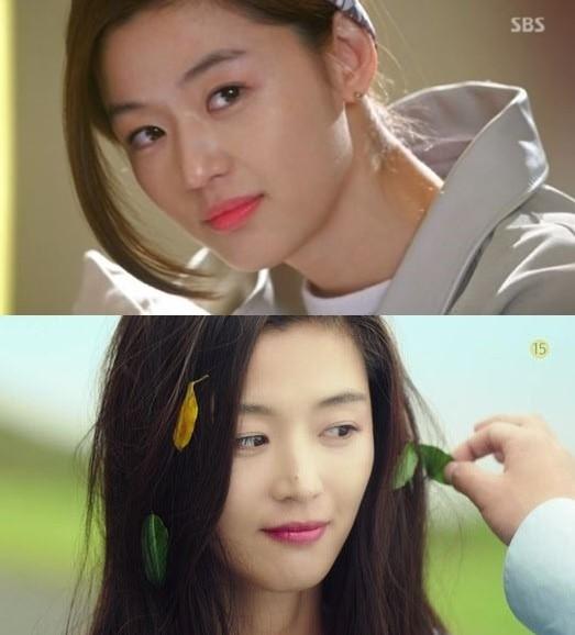 최근 한 온라인 커뮤니티 사이트에 SBS 드라마 '별에서 온 그대'와 '푸른 바다의 전설' 속 전지현의 모습이 담긴 방송장면이 게재됐다.