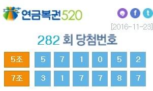 한편 나눔로또가 23일 오후 발표한 연금복권 282회차 1등 당첨번호는 각각 '5조 571052', '7조 317787'이다. 2등 당첨번호는 '5조 571051', '5조 571053', '7조 317786', '7조 317788'이다.