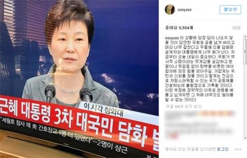 허지웅은 지난 29일 인스타그램을 통해 올린 글에서 “이 상황에 당장 답이 나오지 않을 것이 당연한 국회로 공을 넘겨 버리고 머리 너무 잘 썼다고 우쭐해 있을 담화문 설계자와 대통령에게 너무 화가 난다”고 말했다.