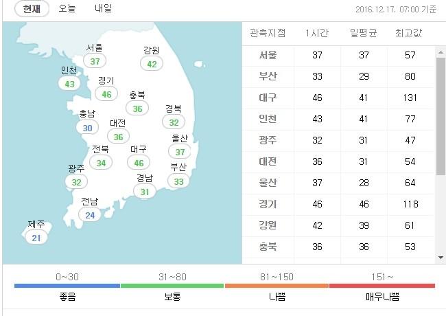 오늘(17일) 미세먼지 농도가 나쁨으로 조심해야 겠다.
