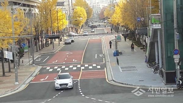 | ▲ 도로다이어트 구일로 10길 시행 후(사진제공=구로구청) | ||