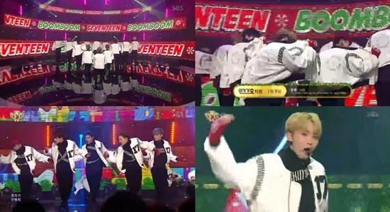 18일 오후 방송된 SBS '인기가요'에 출연한 세븐틴은 '붐붐'으로 무대를 선보였다.