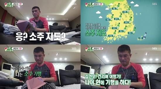 그는 이날 방송에서 테블릿 PC로 소주지도를 검색한 뒤 자신의 소속사 대표와 일명 '소주 기행'을 떠났다.