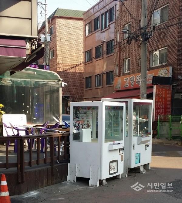 | ▲ 경기 시흥시가 지역내 주택가 주변 이면 도로상에 우후죽순 난립한 각종 게임시설에 강력한 행정조치를 예고하고 있다. 사진은 도로점용 허가 없이 설치돼 있는 게임기의 모습. | ||