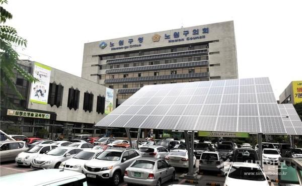 | ▲ 노원구청 주차장에 태양광을 설치한 노원햇빛과 바람 발전소의 모습.(사진제공=노원구청) | ||