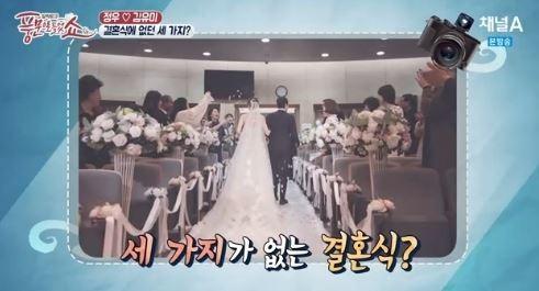 정우-김유미는 지난해 1월 비공개 결혼식을 올렸다. 과거 채널A '풍문으로 들었소'에 따르면 둘의 결혼식에 3가지가 없었다. 연예인 협찬, 혼수, 웨딩화보가 바로 그것.