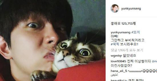 윤균상은 최근 자신의 인스타그램에 한 장의 사진을 공개했다. 사진 속에서 윤균상은 반려묘 ‘또미’와 함께 있는 모습이다.