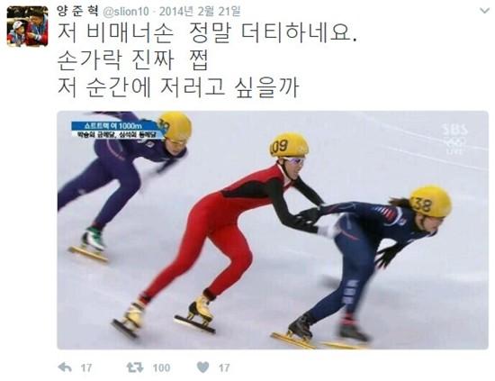 양준혁은 당시 장면을 캡처한 사진을 게재하며 "저 비매너 손 정말 더티하네요. 손가락 진짜. 쩝. 저 순간에 저러고 싶을까"라는 글을 남기며 자신의 감정을 표출했다.