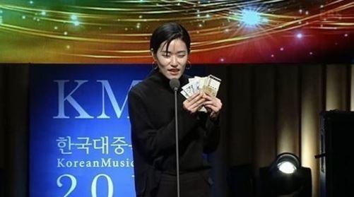 가수 이랑이 한국대중음악상 시상식에서 트로피를 팔아 화제다.