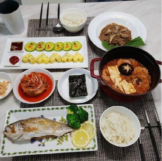 사진 속에서는 그의 아내가 차려준 듯한 밥상이 찍혀 있다. 김치찌개, 계란말이, 생선 등 장원준은 이를 보고 감탄한 것으로 보인다.