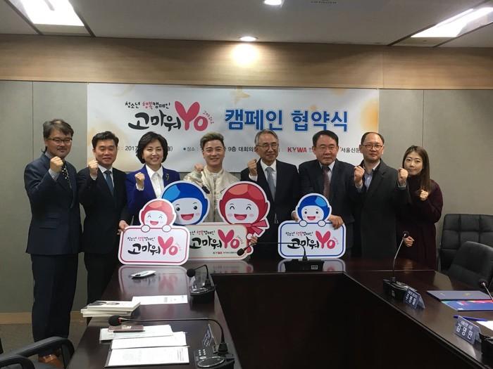 아웃사이더는 6일 오전 11시 프레스센타에서 한국청소년촬동진흥원(KYWA), 서울신문사와 함께 청소년 행복캠페인의 일환인 '고마워Yo' 협약식을 가졌다. 청소년 행복캠페인 ‘고마워Yo’는 ‘감사 나눔’ 실천을 통해 청소년의 행복지수를 높이고, 인성 함양을 유도하는 청소년 인성활동 프로그램이다.