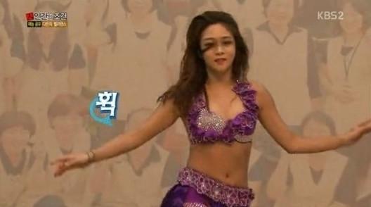 정다은 아나운서는 과거 KBS2 예능프로그램 ‘인간의 조건’에 출연해 재능 공유로 벨리 댄스를 선택하며 보라색 벨리 댄스 의상을 입고 무대에 올랐다.