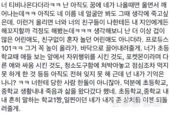 | ▲ (사진=한종연 폭로한 해당 SNS 캡처) | ||