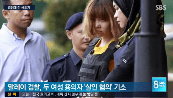 김정남 암살 용의자인 흐엉와 아이샤는 단 돈 10만 2천원을 받고 이 같은 암살 작전에 투입된 것으로 알려졌다. 단순한 방송사 몰래카메라 인 줄 알았다고 밝힌 두 사람은 말레이시아 당국에서 살인 혐의로 기소됐다. 말레이시아의 현행법상 사형 선고가 내려질 확률이 높다.