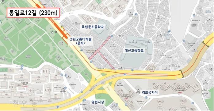 구는 우선 통일로 12길의 사직로 5(대성집)~통일로12길 23(독립문초등학교) 폭 5~7m, 면적 1723.97㎡, 연장 230m 구간을 기존 양방통행이던 통행 방법을 일방통행으로 변경해 통일로 12길을 통과하는 교통량을 감소시켜 교통사고 발생확률을 감소시킨다.