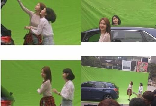 가수 아이유가 배우 유인나와 함께 CF 촬영을 하는 모습이 포착돼 화제다.