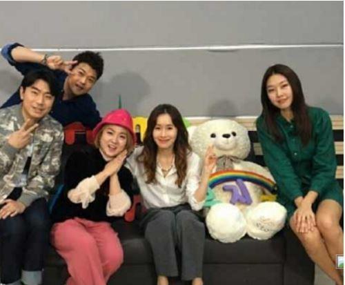 김지수는 곰돌이 인형과 함께 정중앙에 앉아 귀여운 미소를 짓고 있다. 이시언, 전현무는 옆에 V자를 그리고 있고 박나래도 웃음지으며 카메라를 바라보고 있다. 한혜진은 무릎에 손을 얹은 모습이다.