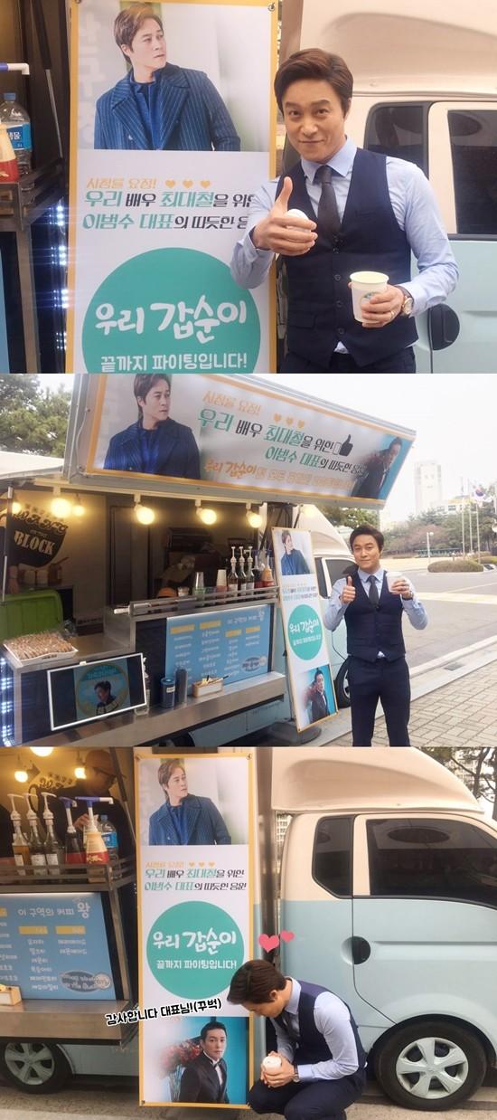 이범수는 지난 28일 SBS 드라마 ‘우리 갑순이’ 촬영장에 커피와 쿠키를 실은 간식차를 보냈다.