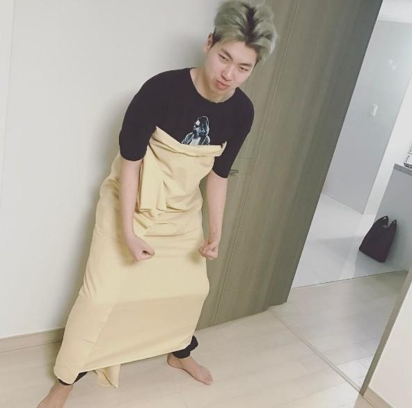 사진 속 최하민은 노란색 천을 온 몸에 두른 채 기합을 넣고 있는 듯한 우스꽝스러운 포즈를 취하고 있어 눈길을 끌었다.