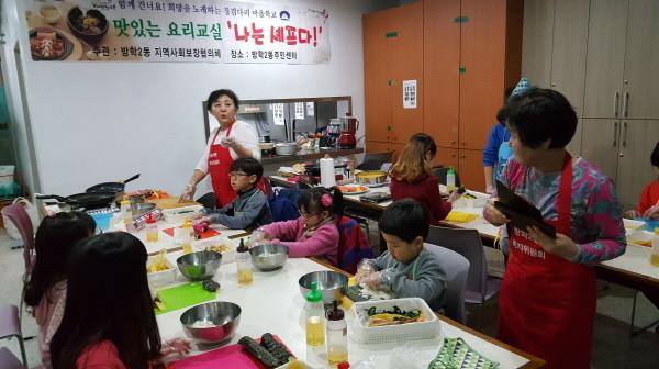 | ▲ 사진설명 : 지난 4일 열린 '요리교실'에서 체험학습에 참여하고 있는 아동들의 모습.(사진제공=도봉구청) | ||