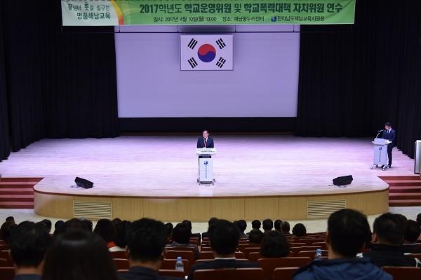 또한, 전라남도교육청 김상윤 장학관은“안전하고 행복한 학교를 만들기 위한 학교폭력의 이해와 사안처리” 주제를 가지고 요즘 특별히 사회 이슈가 되고 있는 학교폭력, 가정 학대 예방 방법 등에 대한 실질적인 예방대책과 해결방법을 제시해 연수에 참석한 운영위원 및 학교폭력대책자치위원들로부터 높은 호응을 얻었다.