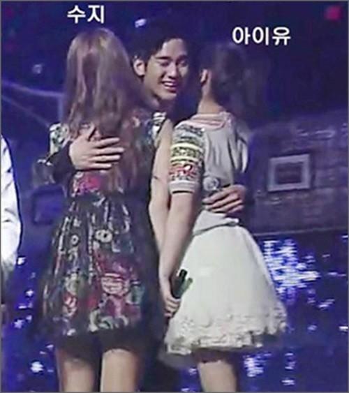 사진 속 김수현은 아이유, 수지와 포옹을 하고 있다. 세 사람은 과거 KBS2 드라마 ‘드림하이’에서 호흡을 맞춘 바 있다. 특히 세 사람의 다정한 모습이 눈길을 끈다.
