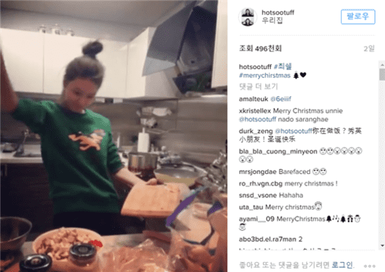 해당 영상에 남긴 정경호의 댓글이 눈길을 끈다. 정경호는 팔소매를 걷고 요리 중인 수영을 가리켜 댓글로 “팔을 그렇게 걷으면 손목 늘어난다 했지?”라며 이모티콘을 덧붙였다.