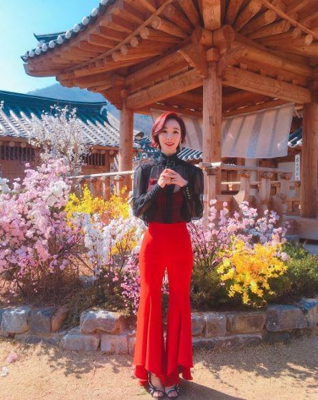 공개된 사진 속에는 만개한 꽃 앞에 서있는 한수연의 모습이 담겨있다. 특히 그의 아름다운 자태가 눈에 띈다.