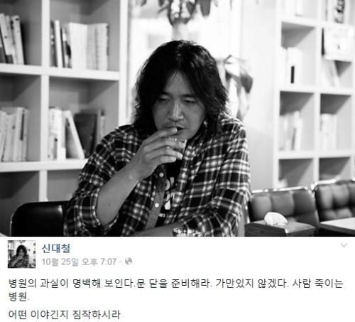 앞서 신대철은 “병원의 과실이 명백해 보인다. 문 닫을 준비해라. 가만있지 않겠다”며 글을 게재한 바 있다.