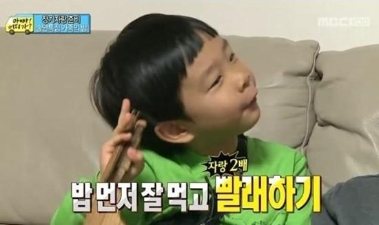 민율이가 “밥 먼저 잘 먹고 빨리하기”라는 엉뚱한 제안했지만 김성주는 “가족 장기자랑을 하는 장소에서 방청소랑 빨래를 할수 있을까?”라고 민율이가 알아들을 수 있게 설득했다.