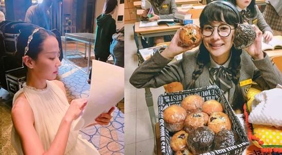 공개된 사진 속 조여정은 '완벽한 아내' 촬영장에서 대본에 몰두하고 있다. 또 다른 사진에는 고등학생으로 분장한 조여정의 모습이 담겨있다.