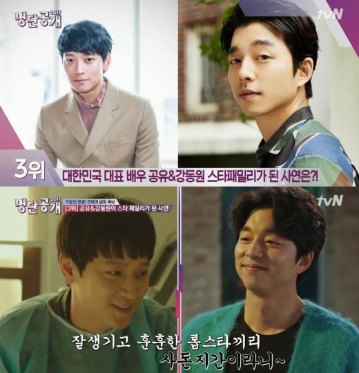 최근 방송된 tvN '명단공개'에서 공유가 절친 강동원과 가족간의 결혼으로 맺어진 사돈지간이라는 사실을 공개했다. 공유와 강동원이 '가문의 영광 연예계 금빛 족보' 스타 랭킹 3위에 오른 것.