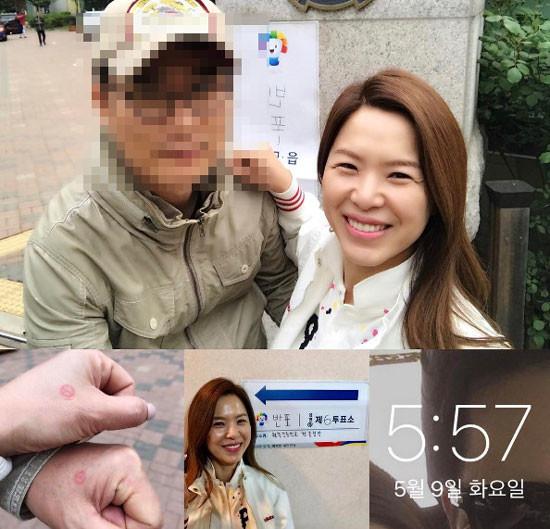 9일 김지선은 자신의 SNS에 한 장의 사진을 게재했다. 사진 속에는 김지선이 남편과 함께 투표소를 찾은 모습이다.