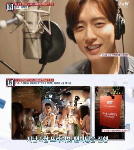 박해진은 과거 방송된 tvN ‘명단공개’에서 ‘스타들의 역대급 역조공? 팬들을 사랑하는 리얼 팬바보 스타!’ 2위에 올랐다.