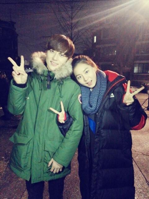 공개된 사진 속 유이와 황민현은 두꺼운 외투를 입고 팔짱을 낀 채 브이를 하고 있으며 서로 친해 보이는 모습이다.