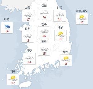 23일 현재 서울은 17도, 춘천 14도, 대전 15도, 청주 16도, 대구 16도, 부산 16도, 제주 17도를 기록 중이다.