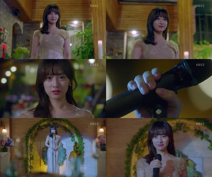 잠시 후, 금빛 드레스를 입은 애라가 등장했다. 레드 카펫 끝에 마련된 사회석으로 향하던 애라는 "마이크를 착 잡은 순간, 세상이 내꺼였다"라며 설레는 속마음을 내비쳤다. 이후 그는 "내빈 여러분께 잠시 안내 말씀드리겠습니다"라는 멘트로 2부 파티의 오프닝을 열었다.