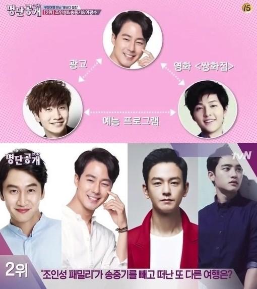 ‘조인성 패밀리’는 2위에 이름을 올렸다. 조인성과 송중기는 영화 ‘쌍화점’을 통해, 송중기와 이광수는 드라마를 통해, 이광수와 조인성을 광고 프로그램을 통해 인연을 맺었다.