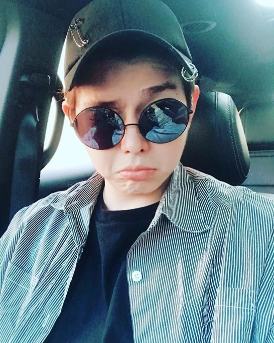 사진 속 그는 알이 큰 선글라스와 독특한 장식이 달린 검은색 모자를 쓰고 있다.