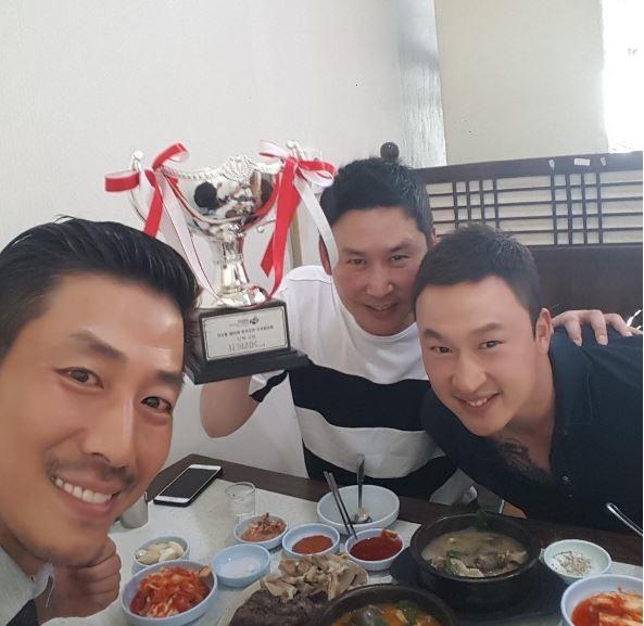 공개된 사진 속에는 카메라를 향해 환히 웃고 있는 김승현, 신동엽, 윤태영의 모습이 담겨있다. 이들의 다정한 모습이 눈길을 끈다.
