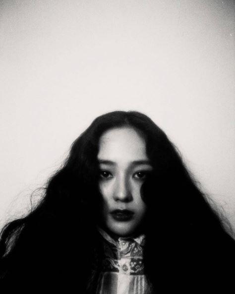 사진 속 크리스탈은 검은 파마머리를 풀어헤친 채 정면을 응시하고 있다.
