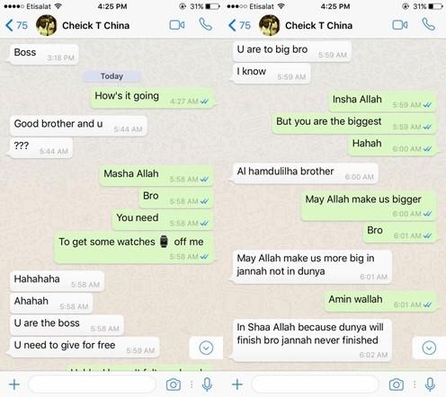 티오테와 친한 친구 관계로 알려진 디자이너 요셉 아부바카르 투미는 티오테 사망 소식이 전해진 직후 그가 사망 전 나눈 메시지 내용을 공개했다.