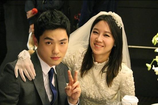 공개된 사진 속 공효진은 웨딩드레스를 입고 김정현에게 어깨동무를 두르고 있으며 김정현은 카메라를 응시한채 브이를 그리고 있다.