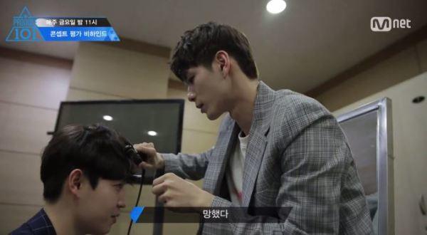 공개된 영상 속에는 무대 뒤에서 옹성우이 김재환의 머리를 손질해주는 모습이 담겨있어 눈길을 끌었다.