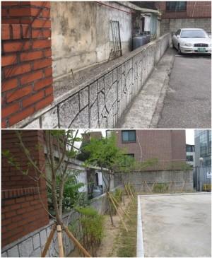 우선 주차구획·차량 스토퍼 후면의 아스팔트·콘크리트를 철거한 후 경계석을 설치하고 잔디블록으로 조성했으며, 담장에는 두릅나무과의 덩굴식물인 송악을 심었으며, 주차장 외곽에는 백일홍, 남천, 하늘매발톱, 수호초, 돌단풍, 잔디 등을 심어 계절에 맞는 꽃들이 아름답게 피어날 수 있도록 띠 녹지공간을 조성했다.