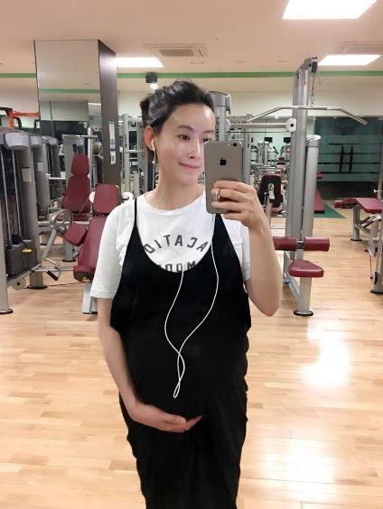 공개된 사진 속에는 헬스장에서 사진을 촬영하고 있는 정양의 모습이 담겨있다. 둘째를 임신 중인 정양은 현재 만삭이다.