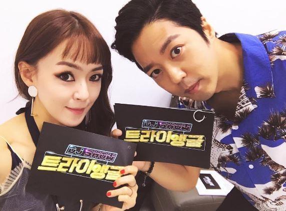 사진 속 김윤아와 김형규는 DJ쇼 트라이앵글 대본을 들고 카메라를 바라보고 있다.